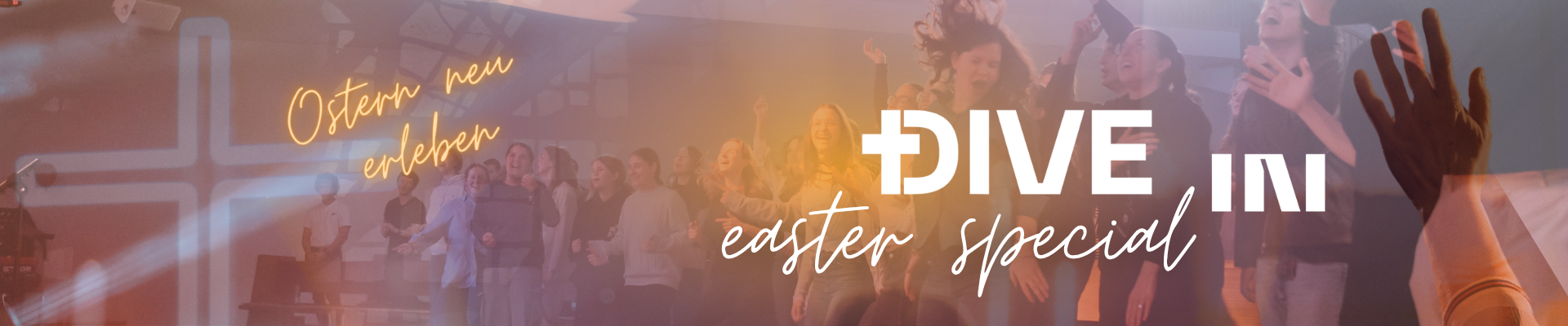 Beim "DIVE IN Easter Special" trifft unser Eventformat auf Tradition. Es erwarten dich Osterworship, Tiefgang, Lichtshows, Freude, Gemeinschaft und eine Predigt kombiniert mit katholischen Elementen. Wir würden uns freuen, wenn du anschließend beim Osterfeuer verweilst, mit uns anstoßt und feierst.